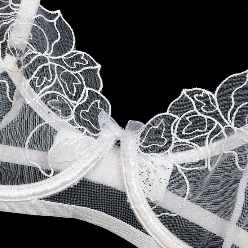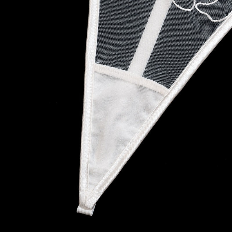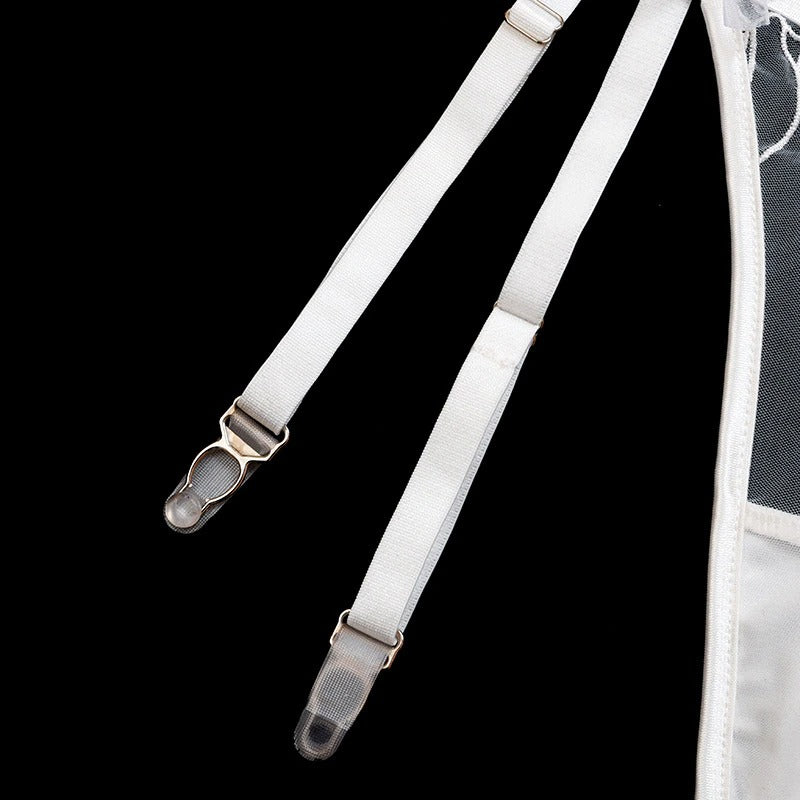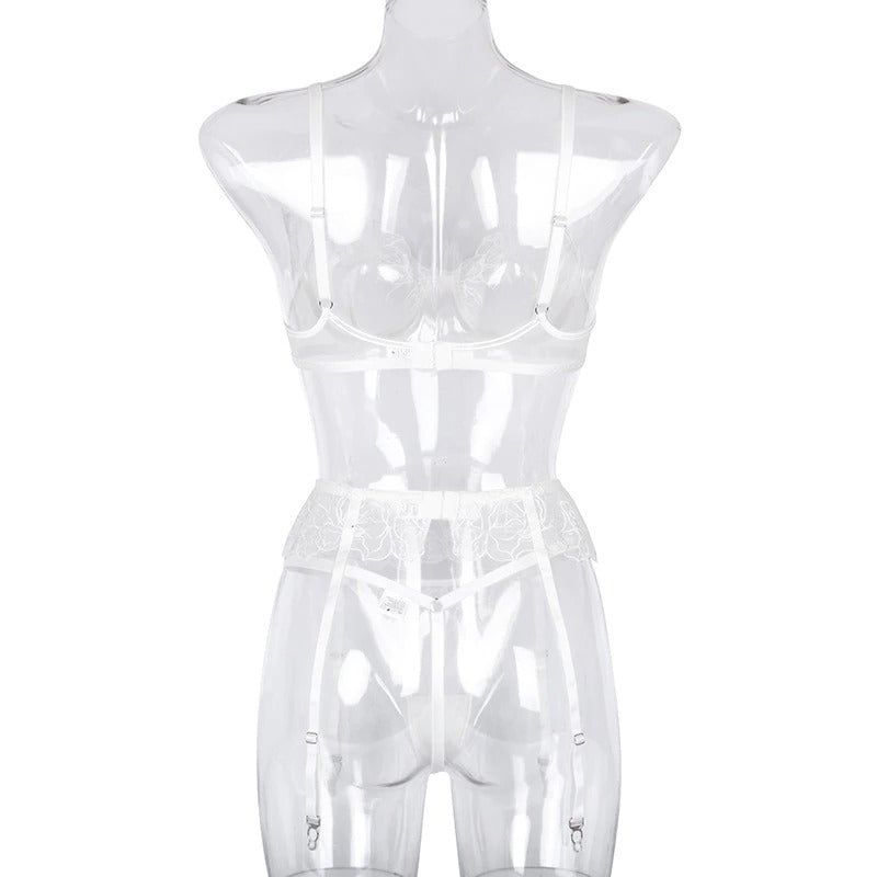 Timeless and romantic, this three-piece lingerie set includes a bra, thong and belt. Classic elegance for your wedding night, special occasion or romantic night at home. Great for your honeymoon, as a gift from bridesmaids and your wedding night. Boudoir shoots will pop with this piece!