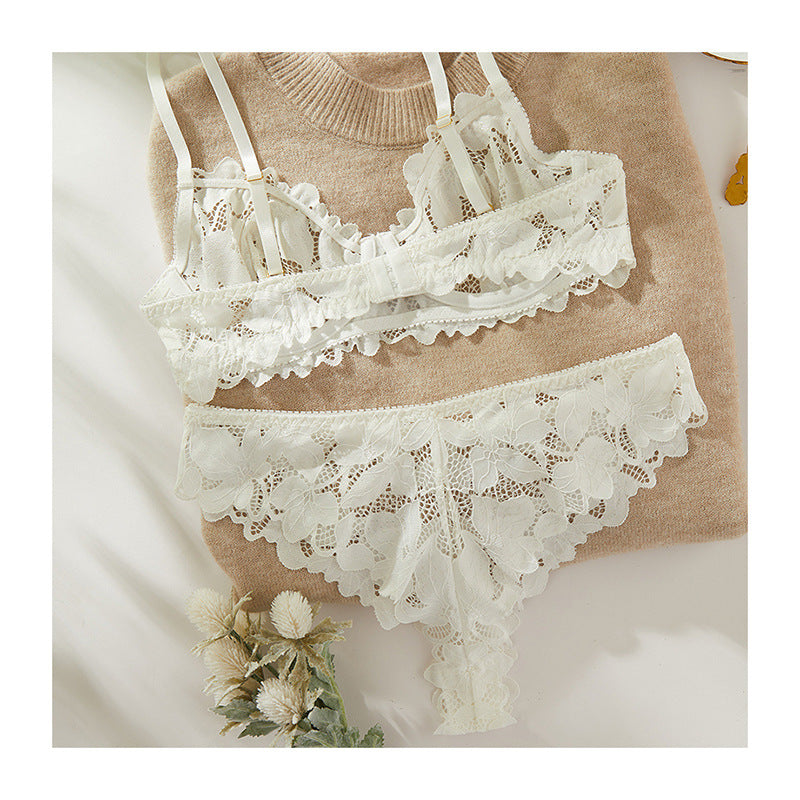 Inspired by the graceful beauty of orchids, the embroidery softly blooms across sheer panels, creating an enchanting interplay of texture and light. The crisp white palette highlights the exquisite craftsmanship, evoking classic Parisian romance and refined sophistication. Graceful, luminous, and endlessly captivating, this set is designed to make you feel confident, radiant, and undeniably beautiful with every move.